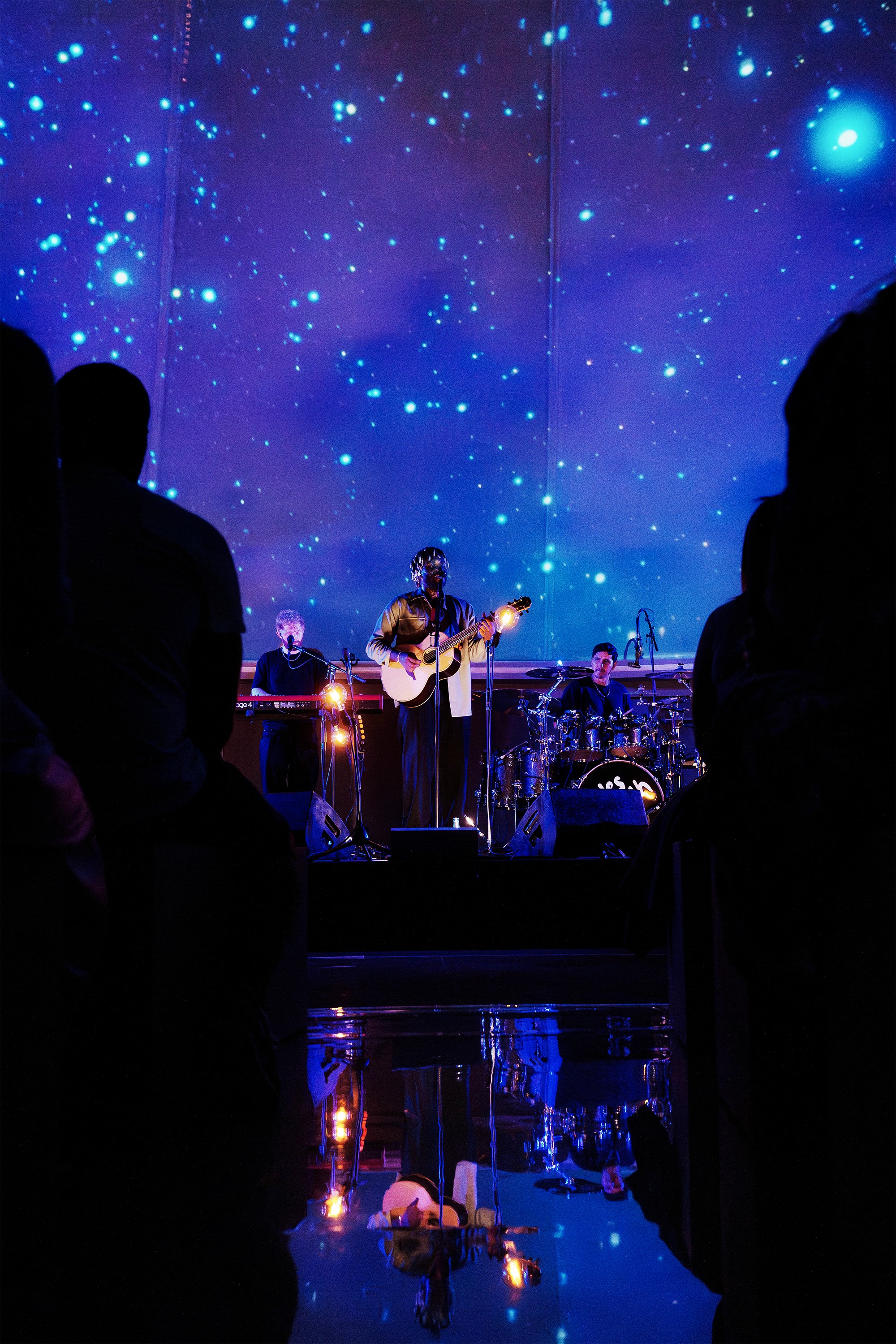 Air brought their own LED visuals, and our challenge was to enhance them without interfering with their artwork. We layered a dynamic northern lights setup that could be adjusted in real time. At times, the visuals were dimmed to a simple starry sky, with colors controlled via DMX to perfectly complement the performance.