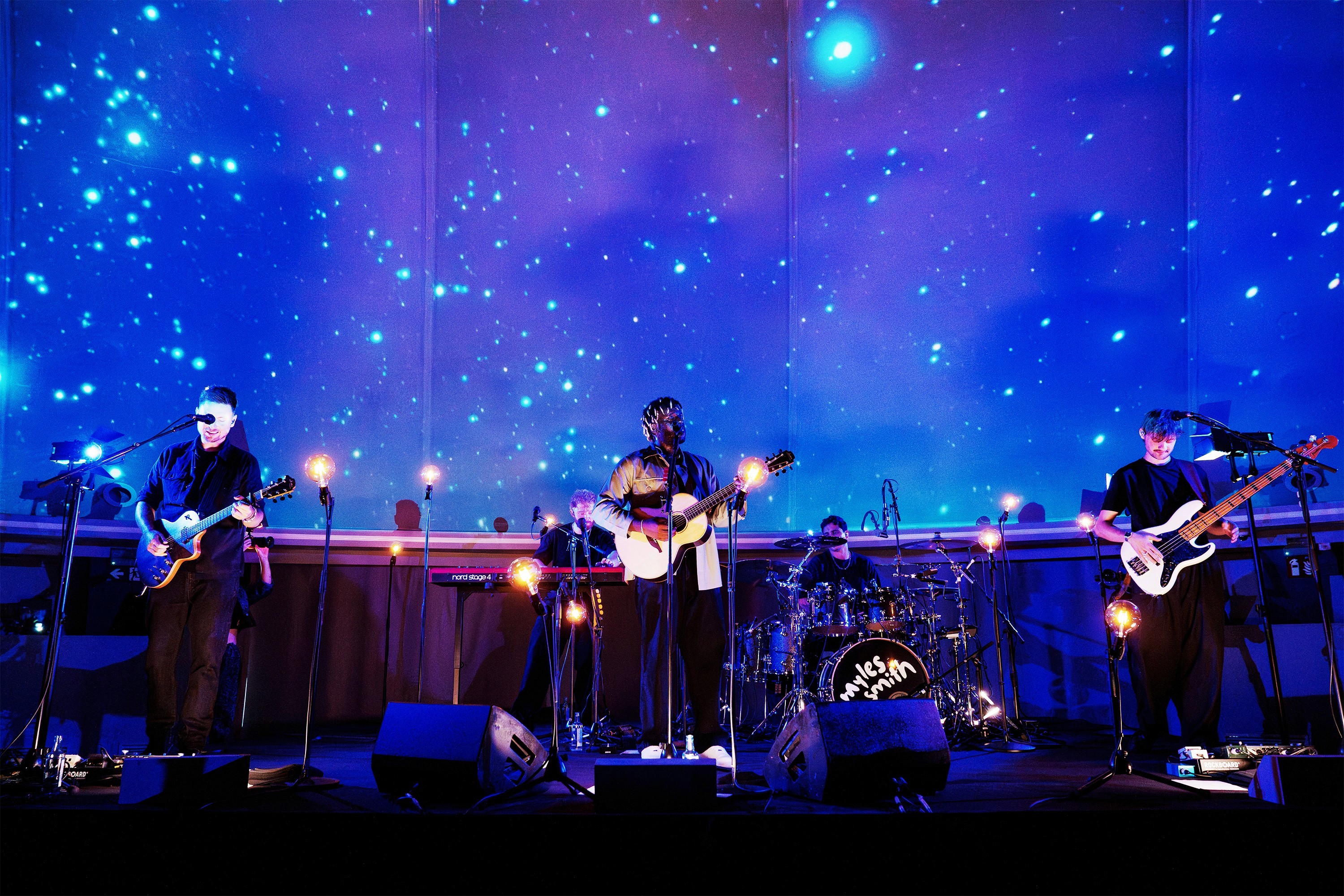 For Myles Smith, best known for his hits Stargazing, Gold, and Nice to Meet You, we created a mesmerizing night sky with shooting stars that perfectly complement his unique style. Our focus was to keep the artist at the center of attention while designing visuals that blend naturally into the scene, creating a subtle atmosphere that surprises and delights viewers everytime when they look up.